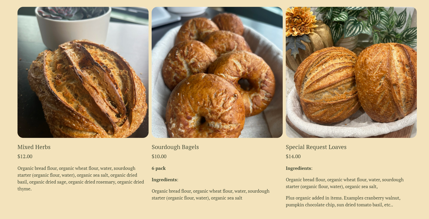 Specialty loaves are also available upon request.